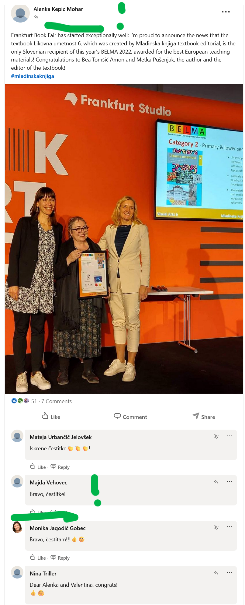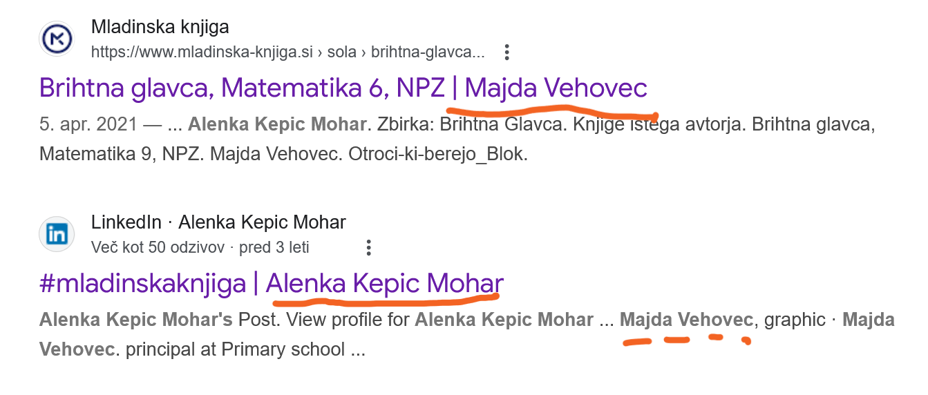 Gospa Majda je na spletu takole navdušeno čestitala gospe Alenki. Pri isti založbi je namreč še kot ravnateljica ipd. izdala priročnik...v zvirki z res povednim nazivom - Brihtna glavca!