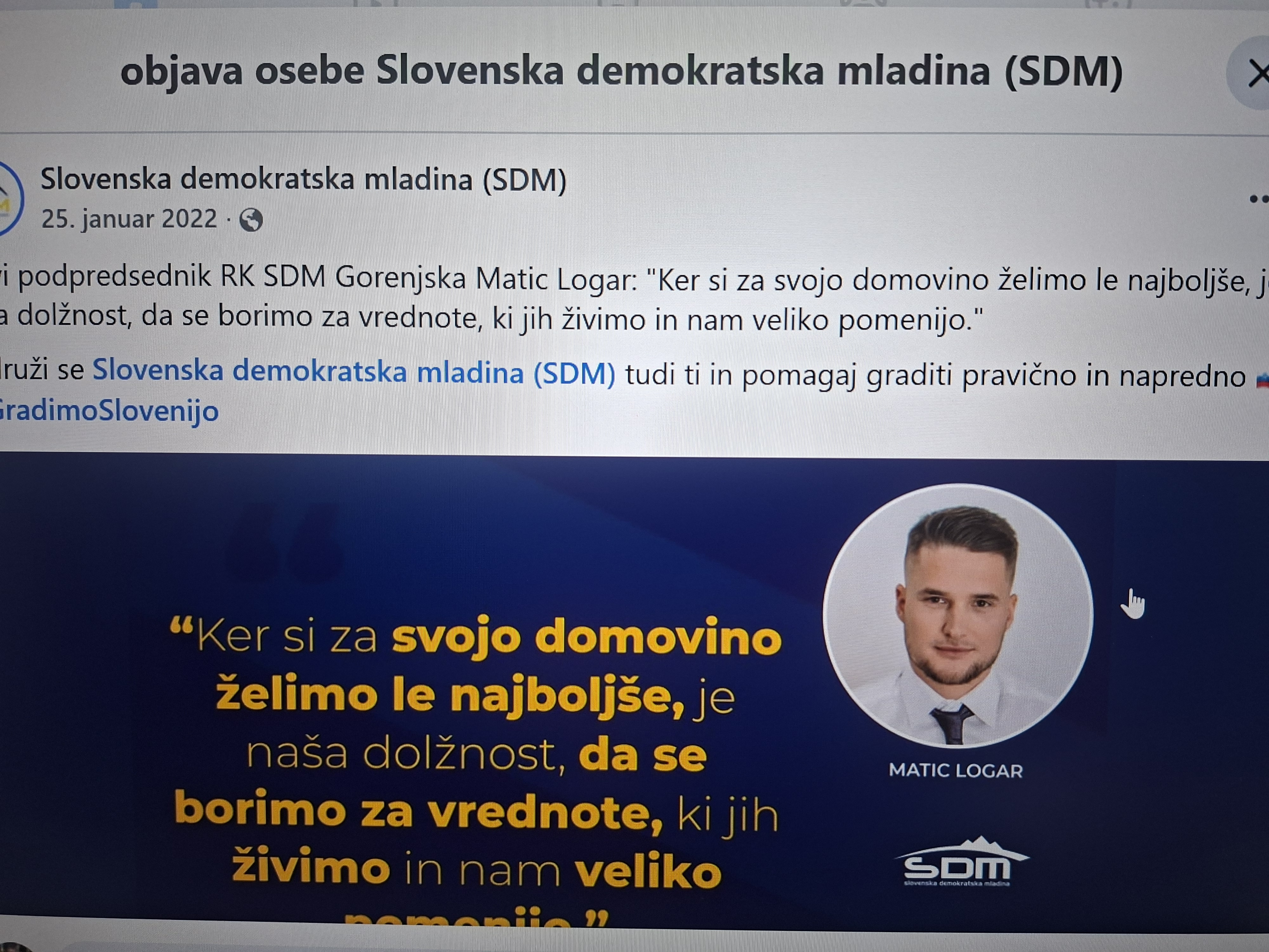 Nedolgo nazaj, je bil z(a) Janšo: s polno angažiranostjo in primerno funkcijo. Mladi Britofljan pa je nekje vmes začutil, da "obstaja izbira" in glej ga no: danes se masti s hamburgerji ipd. in je za Anžeta. Da ne bo pomote: nimamo nič proti, ker mnogi itak prisegajo, da je gre za "isto ....., drugo ........" kot sočno znajo reči v drugem jeziku. NAUK PA JE MOGOČE VZETI /IN NAJ GA VSAK PO SVOJE, DA ZOPET NE BO NESPORAZUMA/; Kar te Janez(ek) nauči, to Matic zdaj že zna!" (kot je namreč večni vodja SDS v mladosti izpod komunističnega jarma zbežal na drugo stran, ker mu Partija ni dala na oblast, je zdaj naš lokalni Matiček odšel v drugo stranko....ali tudi na drugo stran pa bo jasno kmalu)....Čestitamo, tako mlad - pa že zna v politiki!