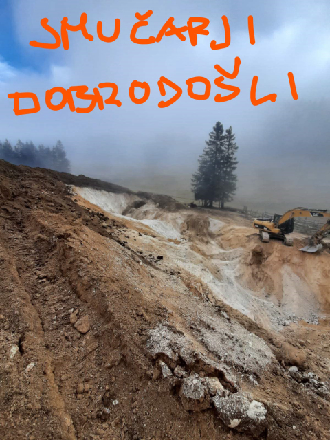 Na Krvavcu vzbujata pozornost novi cesti do objektov pomembnih Janeza Janše in Joca Pečečnika. Pesek za ceste, ki so v obnovi ali gradnji pa iz tele "krvavške jame"....