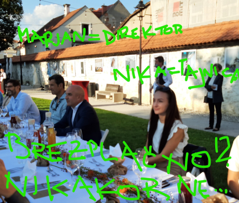 Tajnica direktorja je bila včeraj spremljevalka direktorja Javnega zavoda protokolarne storitve /krajše Brdo/ na dogodku Dolga miza. Vrednost vstopnice je bila 60 evrov, spremljevalka na fotografiji (vir: Facebook) pa je sicer profesorica slovenskega jezika (vir: Facebook) od leta 2020 - a opravlja naloge "vodje pisarne direktorja". Ker je nenavadno, da direktor na dogodke jemlje s seboj tajnico (Brdo ima vsaj 8 zaposlenih na področju trženja, prodaje, marketinga - da o kuharjih ipd. poklicanih za tak dogodek ne pišemo), smo o tem vprašali Marjana Hribarja, ki je direktor Brda postal po sklepu Janševe vlade in sodi v ožji krog zaupnikov predsednika vlade in SDS, ki ji tudi pripada oziroma je njen visoko rangiran član.