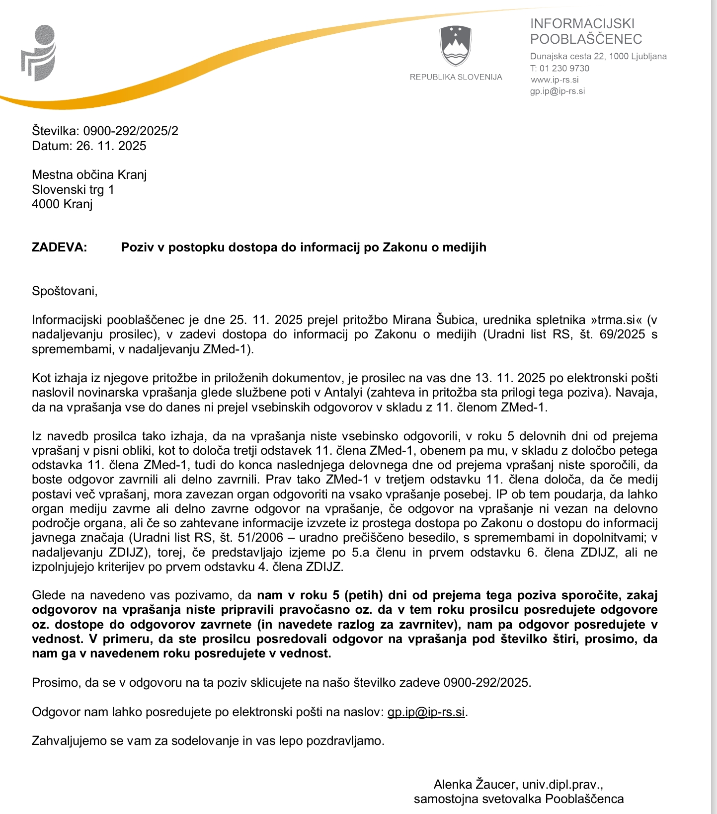 Klemen Malovrh je lahko že danes imenovan za direktorja mestnega zavoda, o tem ni dvoma. Sum spornih dejanj ni potrjen, ker KLEMEN MALOVRH NI ODGOVORIL TRMA.SI NA VPRAŠANJA O DARILIH, KI JIH JE PREJEL IN KATERIH VREDNOST SE GIBLJE PREKO 500 EVR. Ker tega ni storil do danes, je povzročil odziv INFOMRACIJSKE POOBLAŠČENKE, DA ODGOVORI O TEM, ALI JE PRIJAVIL V USTREZNEM POSTOPKU PREJEM DARIL V OBLIKI BREZPLAČNEGA BIVANJA V TURČIJI, A LI NE?!
