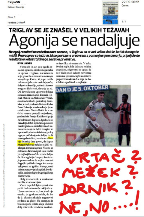 Odločitev sodnic, ki so "ujele" fotografa (slednji je takoj zapustil NK Triglav in ne dela več v klubu) pri delu, da NE PRIJAVIJO DOGODKA je treba spoštovati, a se vprašati o ozadju: SO POPOLNOMA NEMOČNE IN ZLAHKA USTRAHOVANE, KER SO OD SODNIŠKIH ŠEFOV POPOLNOMA ODVISNE. Seveda pa je ob to potrebno dodati še tole: s svojim molkom in ravnanjem so močno pripomogle k spoznanju, da žrtvam takih početij ni lahko v "moškem svetu" kar NZS nesporno je.