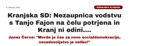 SD v Kranju vlada, a župan zanesljivo predstavlja prav tisto, kar mnogi obsojajo: je pragmatik, ki je stranki pomagal in stranka njemu. Daj-dam. Politično gledano pa je za njegovo udobje in korist vedno samo ena in edina stranka: on sam. Da bi poudarjal kake social-demokratske ideale, bo težka. DODAJAMO SVOJ LONČEK: NAJBOLJ LEVIČARSKI ŽUPAN OD OSAMOSVOJITVE JE TISTI, KI OMEJUJE NOVINARSKO POROČANJE IN RES TRAPASTO SKUŠA NAGAJATI TRMI S TEM, DA NAM NE POŠILJA VEČ NOBENIH VABIL IN NE OBVESTIL IN.....KOT OTROČEK, KI JE DRUGEMU SKRIL LOPATKO!? Pa mi vso pošto tako rekoč isto minuto dobimo z drugih naslovov (kar nekaj jih je...). Ni uradno, a Trma ne deluje ravno "forumsko". No, je pa to za nas "ogledalo partije" v podobi SD: njega dni so znali politični partijski veljaki enako obračunavati, če so bili v svojem egu prizadeti. Pa se ni obneslo....