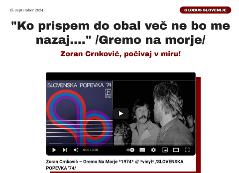 Iskreno sožalje njegovim in še malo simbolike: leta 1974 je zapel Gremo na morje. Po pol stoletja ostajata pesem in morje, Zorana ni več. Kako gre že tisti verz...? "Ko prispem do obal več ne bo me nazaj..." On je prispel, mi še gremo na morje in obale čakajo prav vse in vsakogar.