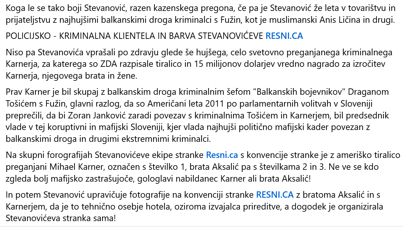 Svoboda združevanja je po Ustavi zajamčena! Zato opozarjamo na povezave, ne presojamo ali se celo strinjamo z vsebino objav. OPOZORILO JE POTREBNO, KER JE ZORAN STEVANOVIĆ PO LASTNI NAVEDBI KANDIDAT ZA NOTRANJEGA MINISTRA V VLADI KJER BI BILA NJEGOVA STRANKA! In da ne bo zablod: kdo je tisti, ki o njem piše in opozarja?
