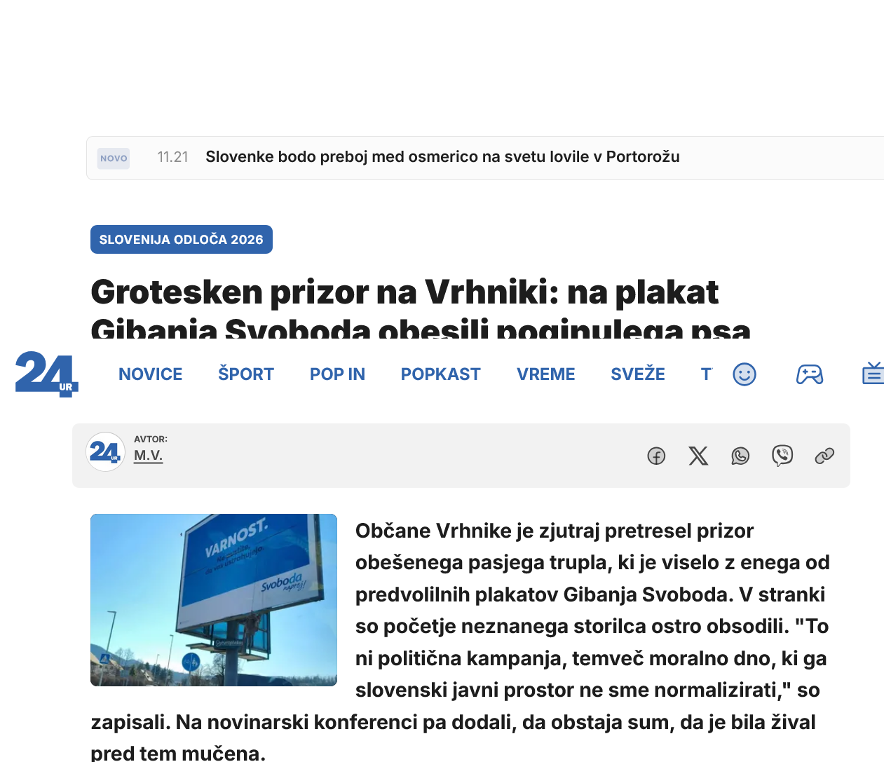 Priznam, da pri skoraj 68 letih (še) ne vem, koga bom volil. A volil bom, ker drugače podpiram...niti ni pomembno, koga ali kaj. Prosim, storite to tudi vi. Vem, da imate vsega poln kufer, ampak: zaradi tistega obešenega psa naredite korak za nas: nismo na psu. Nisem na psu. Nisi na psu. Ampak je to treba pokazati in se odločiti. Ne vem koliko nas bo med tem ali onim potegnilo ločnico z volilno skrinjico, jaz jo bom. Če bom odločal, bom vsaj prepričan (jamstva pa ni...), da sem izbral tiste, ki ne počenjanjo takih nagnusnosti nikdar in nikomur. Da nas je dovolj, ki se bomo temu uprli in se upiramo - vsak po svoje, na vse načine. Le tako bomo sebi in vsem nam potrdili, da nismo "na psu". Kdo pa je ? Vsak, ki ne dojame, da so meje, da so zavore, da so omejitve. Najprej v njem, potem v nas. Če tega ni /kot kaže primer iz okolice središča te države/, potem nam bodo vladali tisti, ki počenjajo kar je zgiraj na fotografiji. Zanesljivo je potem prav vse mogoče. Vem, da je tole pisanje jalovo, ker je velika večina že odločenih in nimam nič proti. A tisti, ki bomo še razmišljali in razmišljamo in bomo odločili, nočemo takih prizorov, nočemo take Slovenije. Le pokazati in dokazati moramo, da ne pristajamo na to, da smo ali si ali je "na psu".....
