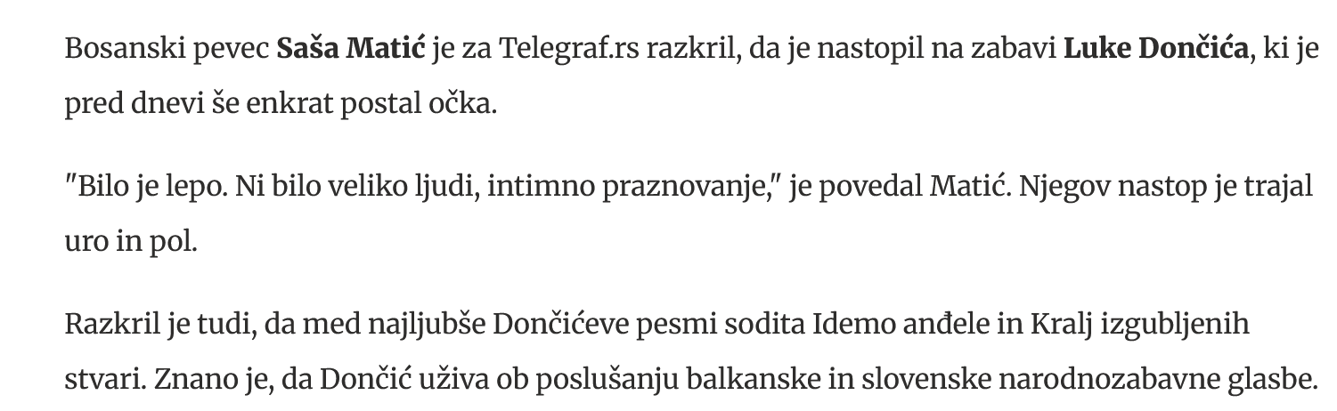 Trma.si spoštuje pravila zasebnosti. Seveda pa meje tega postavljajo javni ljudje. Daleč najbolj medijsko prisoten Slovenec je Luka Dončić, ker o njem zvemo dobesedno vse: od tega, kaj prepeva do tega, kdaj gre na plažo....Zato je incident v kranjski porodnišnici seveda dogodek izpostavljene javne osebnosti in družine, ki jo prav tako izpostavlja redno in na već načinov. Takole je izpostavil npr. svoje praznovanje rojstva druge hčerkice oziroma tako so to izpostavili mediji: