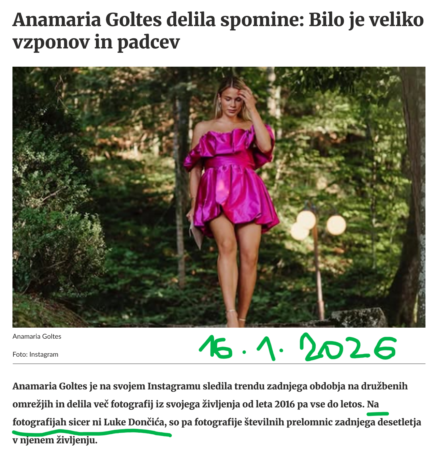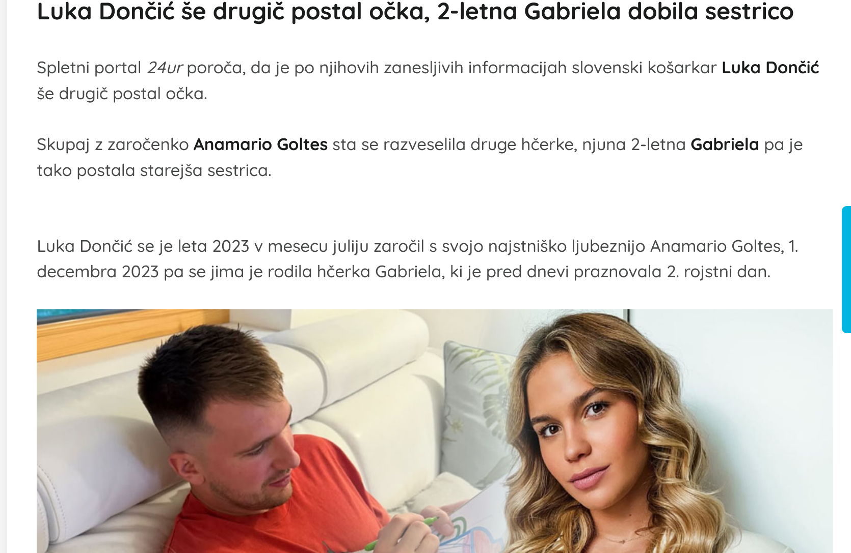 Če o Luki Dončiću mediji vsak dan prinašajo "novice" iz zasebnega življenja (od števila avtov, ki jih ima ipd.), incident iz kranjske porodnišnice ni dobil medijskega odziva, zato pa toliko veš šušljanja ipd. Trma.si je edini medij, ki je preveril, ali se je incident zgodil in dobil ustrezno potrditev. To zadošča za pojasnilo, da mi ne skrivamo ali ravnamo z objavami v korist kogarkoli. Kranjska porodnišnica je javna ustanova kjer pa skrbno čuvajo zasebnost svojih pacientk. To pa ne pomeni, da je mogoče skriti ali prikriti odmevne dogodke javnih osebnosti kar Luka Dončić in Aanamarijo Goltes sta nesporno. Dokaz za to je objava z dne 16.1.2026 na spletu, ki je taka: