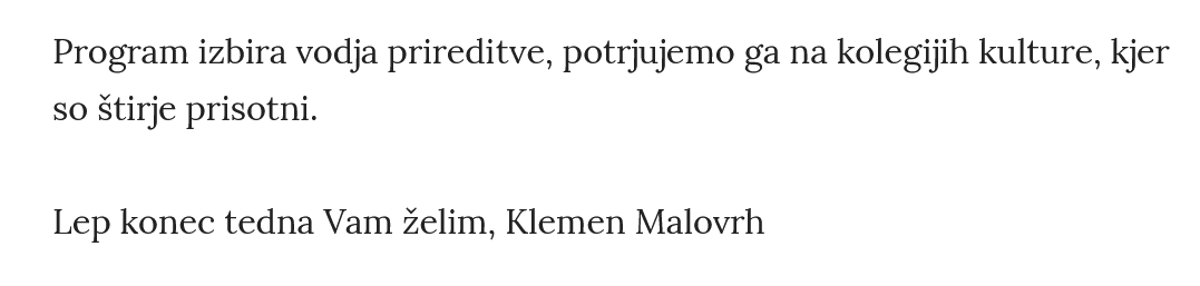 Ko smo pred časom spraševali Klemena Malovrha, kdo dejansko odloča o izvajalcih, ki so vsi plačani z javnim denarjem, nam je odgovoril: