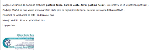 Brez mnogo solzavosti: tako živijo. Vsak dan. V dežju in snegu in soncu. Komunalci. Fantje, možje s tovornjakov. Smrdijo smeti. Oni pa tega ne čutijo več: iz dneva v dan garajo zato, da je Kranj čist in urejen in naše smeti odpeljane. "Ni druge," je rekel eden od njih, ko smo se srečali. Tako je, zato ste vi GOSPODJE! Nič drugega kot gospodje, ker je vaša drža dostojanstvena. Veliki ste v svojem delu, ne v besedah. Komunalci, hvala! Ko vas vidim garati, se mi mnoge druge (tudi moje) stiske zdijo manj pomembne. Zdravja želim vsem!