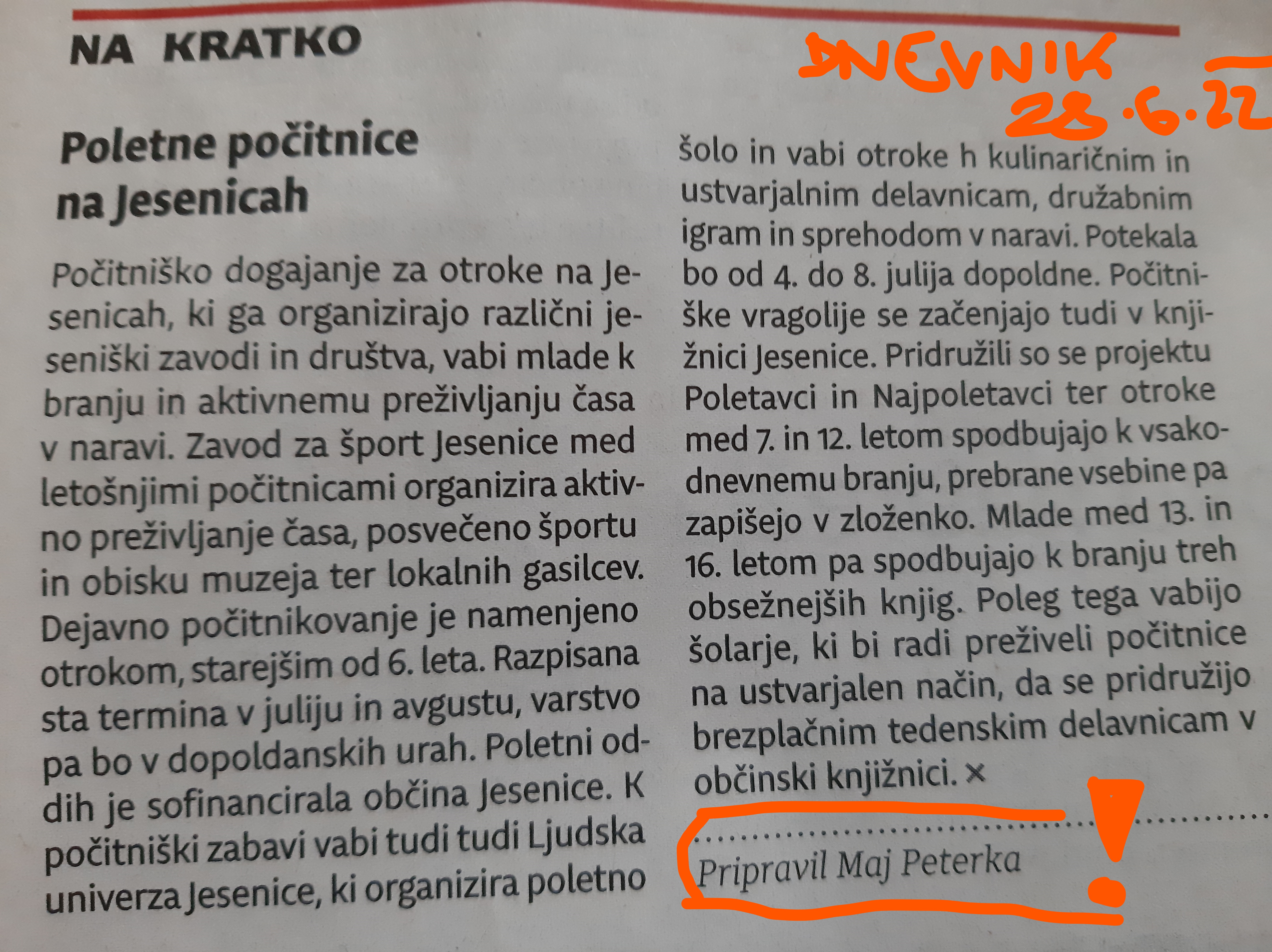 Znani so po očetu in bivšemu soprogu Primožu Peterki, a družina (mama Renata Bohinc in trije otroci) živi že nekaj časa v Zgornjih Bitnjah. MAJ PETERKA je študent novinarstva in zabeležili smo enega prvih poskusov mladega Kranjčana. KI NI BIL SMUČARSKI SKAKALEC, AMPAK - NOGOMETAŠ! ZAČEL JE V NOGOMETNI ŠOLI TRIGLAVA, ZDAJ PA SE JE ODLOČIL ZA "MILIJONSKI PRESTOP" V NJEMU DOMAČE NK BITNJE....Sicer pa je vsak začetek težak, a na Maja lahko ugodno vplivajo silnice v vasi na obrobju Kranja! Le streljaj od njega je namreč doma najboljši medij na Zemlji (in širše) - KRANJSKA TRMA! Mimogrede in za zgodovino: ko je mali Maj začel brcati žogo, sta ga spremljala tudi starša. In ni bil edini, ki ni izbral očetovega športa (sin hokejskega zanesenjaka Drinovca je tudi postal nogometaš....)!