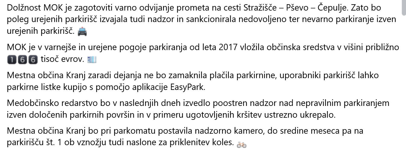 Sporočilo občankam? Akcija? Operativnost? Takole so zapisali na spletu, vsaj ena občanka pa je opozorila na "netočno ceno parkiranja"....