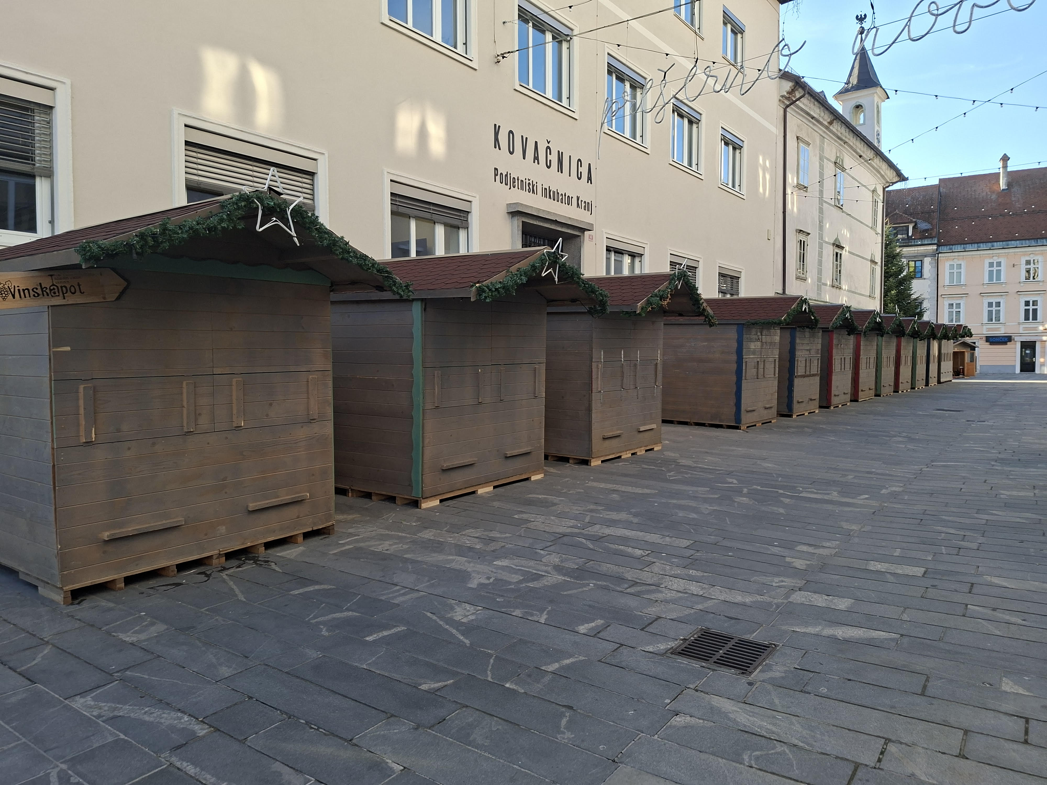 Tole zgoraj je kranjski novoletni sejem. Tak skoraj kot lani in prej. S tem sporočilom: