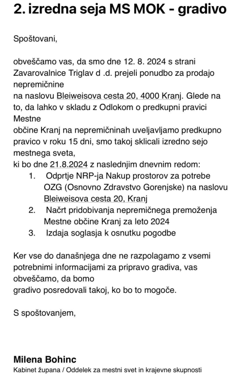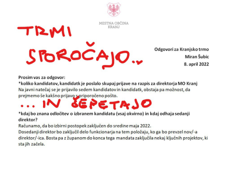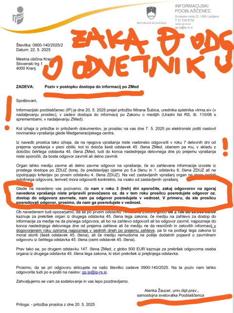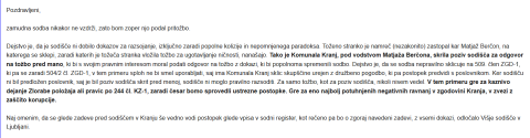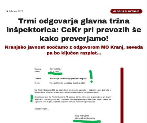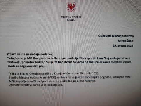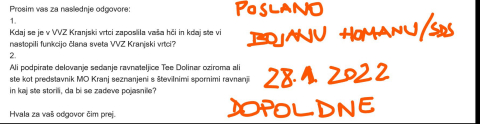 V NEDELJO SMO PREJELI NEPODPISAN ODGOVOR Z OBČINE KRANJ.....ODGOVORNA PA BOSTA MORALA ŠE KAJ DODATI....
