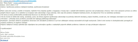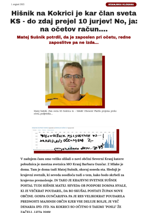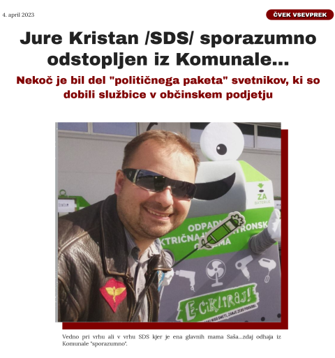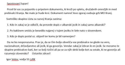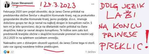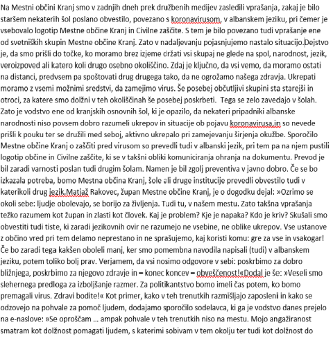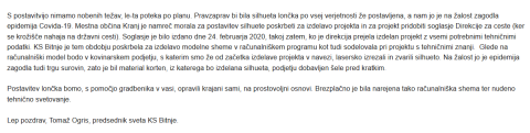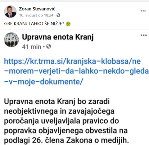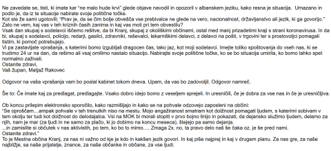 Zahtevek nam je poslala MO Kranj in se nanaša na objavo: »Župan prej podpisal pobratenje kot je iz Kranja v Bitnje prispel odgovor Katje Štruc in njene četice....«