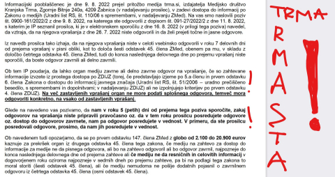 Popravek in prikaz nasprotnih dejstev/naslov/ :MOK spletnemu portalu Trma odgovarja v zakonitem roku