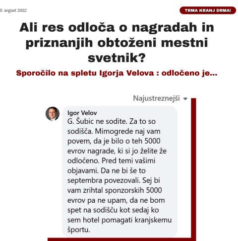 Ko posamičen dogodek pokaže vzorec delovanja sedanje oblasti v Kranju.
