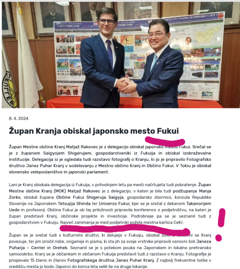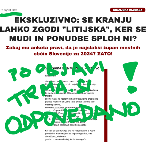 Mestna občina Kranj je morala poslati "japonske dokaze" - potrdilo naših objav!!!