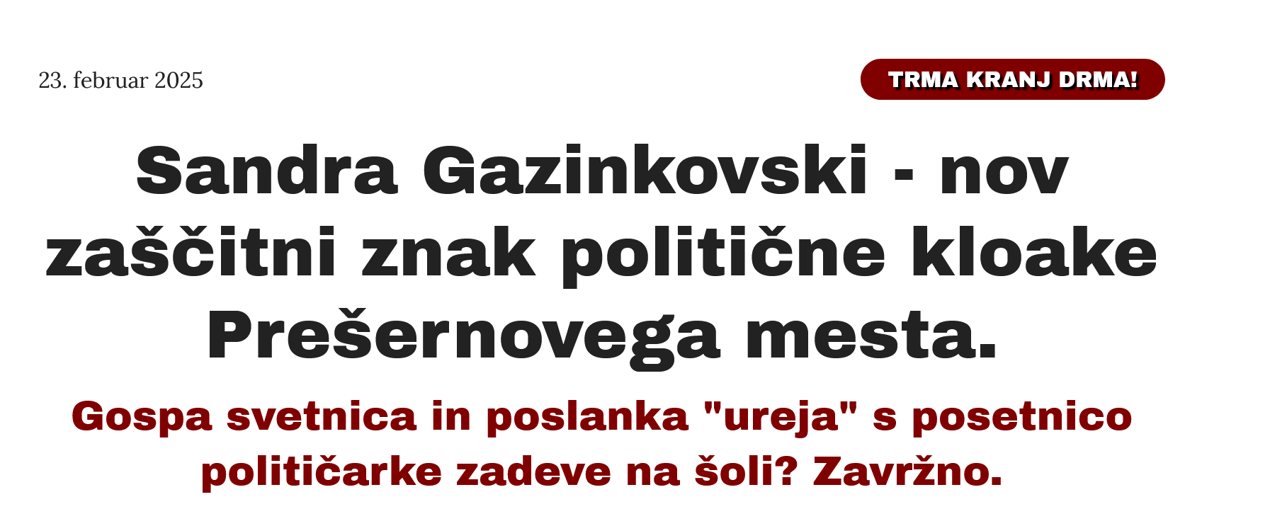 Politične dvoživke imenujemo radi tiste politi(čar)ke, ki menjajo stranke kot perilo, prepričanja tudi pogosto - vse za lastno udobje in korist. Potem, ko je v Kranj sicer priseljena Štajerka Alenka Bratušek doživljala v tem okolju politične zaušnice na volitvah, menjala stranke in na koncu svojo lastno "utopila" v Svobodi, je čas za nov naskok na poslansko plačo: TOKRAT JE NJENO GLAVO OROŽJE VOLILNI OKRAJ JESENICE?! No, zraven bo tudi v Kranju kjer pa ji meša štrene strankarska kolegica Sandra Gazinkovski, ki se je spomnimo po tem, da je nedavno tega naeni od šol s poslansko avtoriteto malo "urejala zadeve" za svojega sorodnika....Kako hitro je iz obrobne političarke iz ozvezdja Igorja Velova postala "nekaj", kajne?