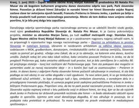 Ko smo poslali vprašanja, tega res nismo pričakovali. Da nekdo dobesedno uprizarja pravljico kjer vsi vidijo, da je cesar nag - a v strahu pred cesarjem to upa izreči le otrok v svoji nedolžnosti. NO, TRMA JE TA OTROK TUKAJ V KRANJU IN TRDIMO, DA JE TISTO KAR SE SKLICUJE MO KRANJ GLEDE UREJANJA PARKA OB PREŠERNOVEM GAJU DEJANSKO - POTRDITEV NAVEDB O TEM, DA SO SE ZADEVE LOTILI RES DILETANTSKO. OZIROMA SO POZABILI NA TISTO KAR JIH OPOZARJA STROKOVNJAK GOBEC: HIMNA SE POJE IN IGRA, PESMI ZANJO (ŠE) NISO HIMNA. PA PREŠEREN GOR IN JENKO DOL!