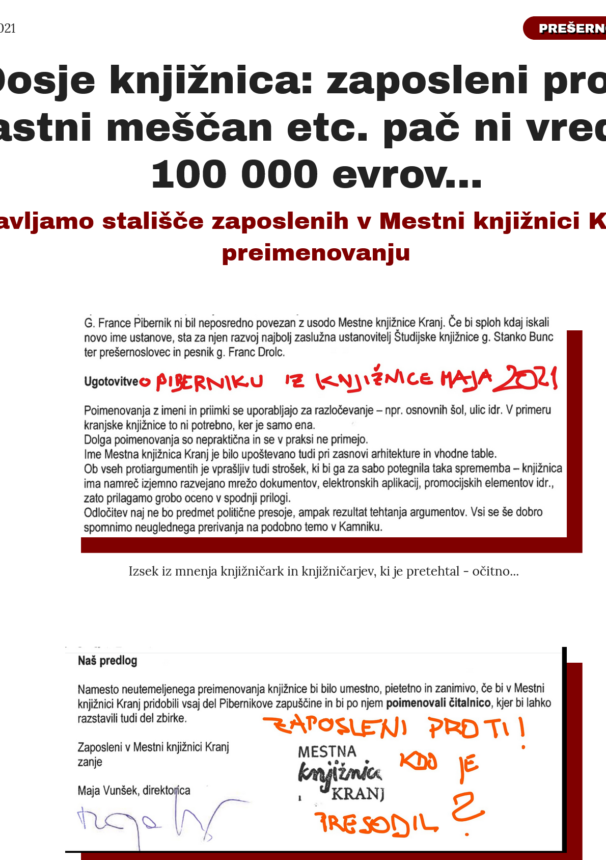 *Maja Vunšek je ob prvem imenovanju "premagala" prav Velova kot protikandidata, v zgodovino pa se bo zapisala tudi po postopku ob predlogu Trma.si, da se knjižnica poimenuje po profesorju, literatu, esejistu, častnemu občanu Kranja, pokojnemu Francetu Piberniku, ki so ga v knjižnici ob tem takole opisali....