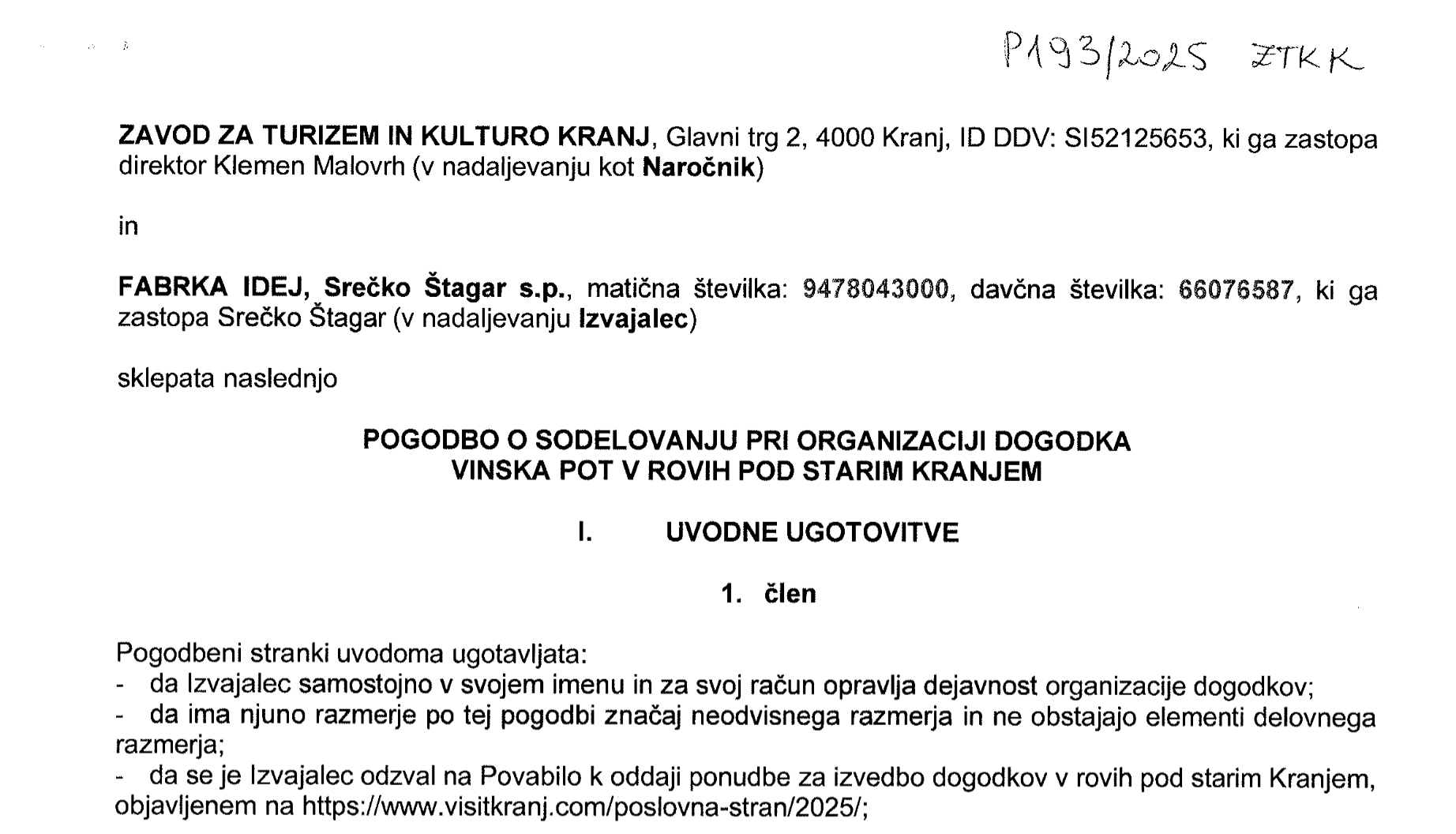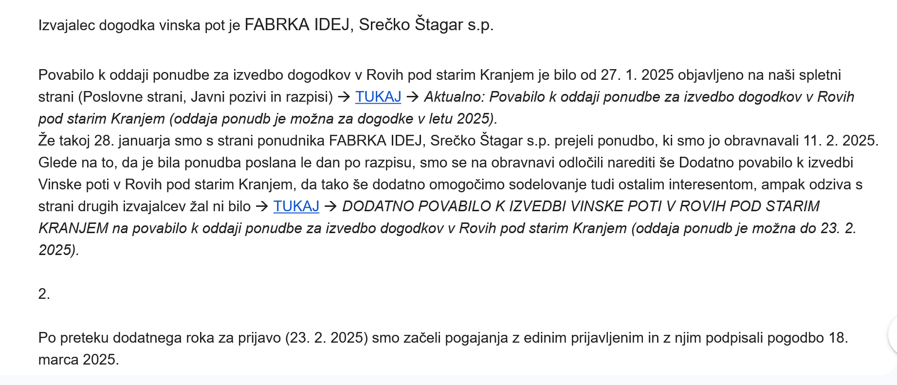 *zato, ker je prej za isti dogodek skrbel kot zaposleni uradnik v zavodu, nato pa ga je "podedoval" kot podjetnik - seveda z ustreznim razpisom ipd. ,ki pa je za letos potekal takole/odgovor direktorja ZTK Klemena Malovarha/
