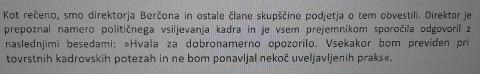 Potem in pomembno: Komunala Kranj je za kadrovske "grehe" direktorja (vodja kadrovskega sektorja pa nesojena udeleženka "bifepolitike" Anita Mežek) Marka Kocijančiča že plačala najmanj 100 000 stroškov za plačila tistim, ki jih je NEZAKONITO ODPUSTIL. In zdaj isti direktor toži Komunalo Kranj, da bo mera polna.