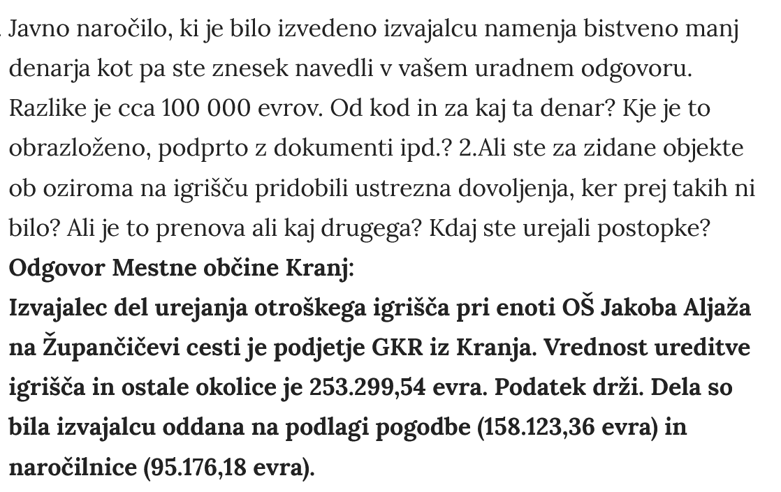 Toda javna naročila imajo svoje zakonitosti, razupisti tudi. Župan Rakovec ni sklenil pogodbe za 250 000 evrov za ureditev otroškega igrišča ampak....