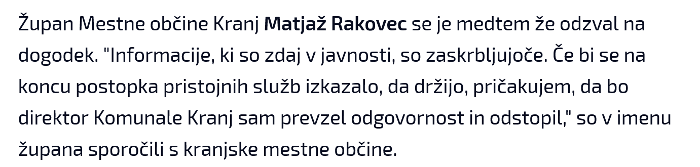 O usodi direktorske funkcije je po dogodku kranjski župan Matjaž Rakovec povedal tole: