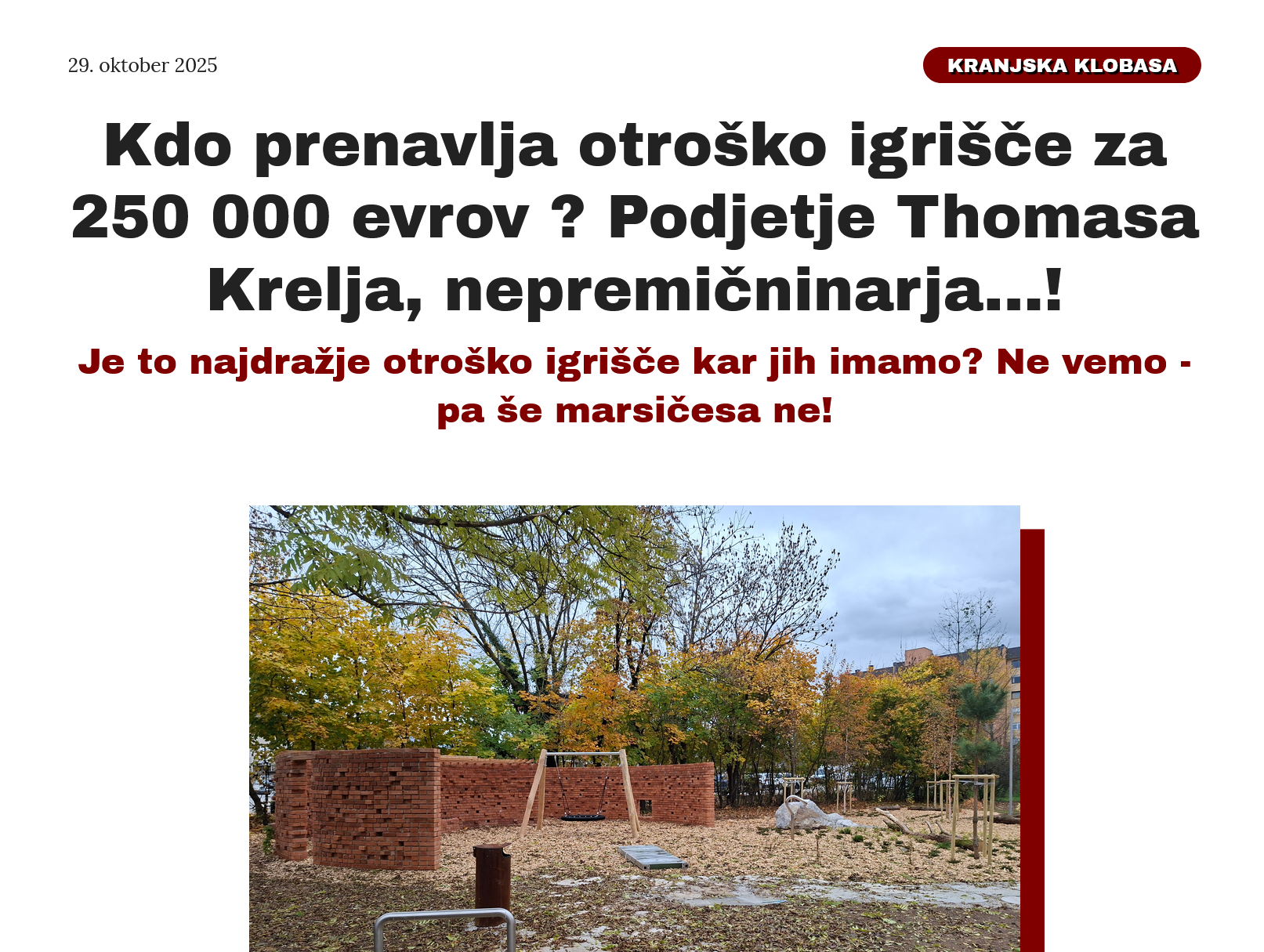*gospod Thomas Krelj je izpostavljen kot podjetnik v tesni povezavi z občino in županom in poslom, ki je pristal v predkazenskem postopku. GRE ZA PRENOVO VRTCA KJER PODJETNIK KRELJ NASTOPA S SVOJIM PODJETJEM GKR, KI SICER NIMA OPAZNIH IZKUŠENJ NA TEM PODROČJU, A TO NI SPORNO: ZMAGALI SO S PONUDBO NA - UGANILI STE - OBČINSKEM RAZPISU.