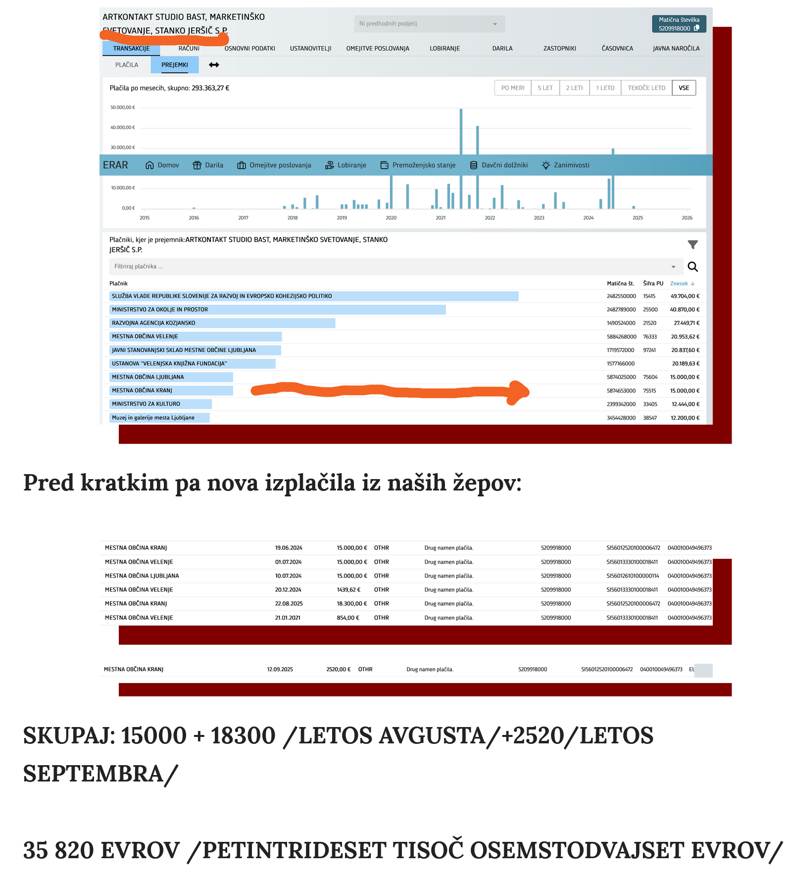 Za ta projekt, ki je bil javnosti neznan do naših objav, so se na MO Kranj letos srečali prejemnik javnega denarja in oba odgovorna za izplačila - župan Rakovec, uradnik Lanišek.