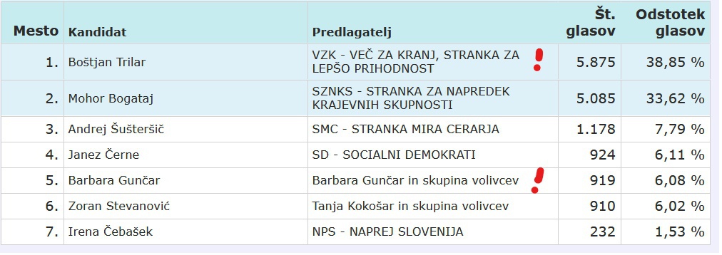 Najdete ga tam kjer je tudi zemljevid NOVE OBČINE PREDOSLJE-KOKRICA! Ugibamo, kdo bi bil župan(ja) te nove občine, ki ima - prosto po Gunčarjevi - že zdaj odličen program naložb ipd. Ampak: imamo ga tudi v Mestni občini Kranj in to že desetletja: samo denarja je malo za vse te načrte. Najprej bo treba namreč za 213. občino zagotoviti plačo za županjo pa uradnike pa celoten aparat, ki bo sposoben vse te projekte načrtovati ipd. Roko na srce: še v Kranju ga nimamo kot bi ga želeli! Sicer pa morda kakšen vzrok za oživljanje legitimne zamisli in projekta tiči v spodaj navedenih rezultatih volitev kjer je želela Barbara Gunčar biti županja - Kranja (pa tudi kot podžupanja se je videla....)!