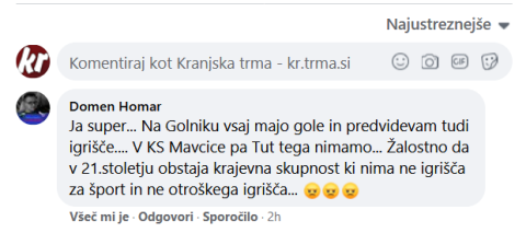 "Dejansko poteka stalna aktivnost, da ta problem rešimo in tudi igrišča uredimo. Prenos z države na občino je prava pot zaureditev lastništva, a menjava vlade, kriza z virusom in še kaj ne gre v prid hitrejši rešitvi, ki pa nesporno že ima podlago in bomo to uredili!" trdi podžupan Kranja Janez Černe (SD) in tudi on poudarja, da smo ljudje prevečkrat prepričani, da je občina tudi država - a se med Kranjem in Ljubljano (na primer) lahko zaplete oziroma birokratski mlini meljejo počasi:"Tudi koše tako rekoč že imamo, a trenutno še nismo lastniki in tako je res žalostno gledati taka igrišča..."