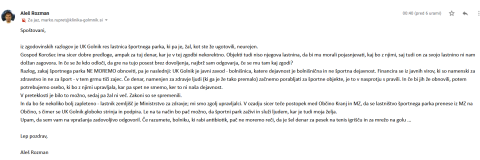 Na Golniku in širše so naše objave sprožile vrsto reakcij. Oglasil se je dr. Aleš Rozman in poudaril, da klinika nima denarja, da je kriza zaradi virusa, da....pozabil pa nam je povedati, da so ob tem sponzorji prav v športu čeprav zatrjujejo, da objektov, ki jih upravljajo sploh ne smejo urediti! Golmnik je namreč pokrovitelj Plavalne zveze Slovenije, športne organizacije. Kot že zapisano, bi po ponudbi za koše in gole plačali 2300 evrov (taka je ponudba)...Klinika Golnik veselo sodeluje tudi pri "teku treh klinik" in še kaj bi se našlo kar se tiče navez s športom. "Problematiko dobro poznam in ni kriva klinika - država deluje prepočasi, da bi dogovorjeni prenos lastnišva z države na občino uredila in bi tako kranjska občina lahko poskrbela za svojo mladino s primerno urejenimi igrišči. Sam sem si kot krajan Golnika oziroma tega konca kranjske občine za to dolgo časa prizadeval, ovir pa je bilo veliko," nam je dejal Primož Terplan, nekdanji podžupan Kranja in bivši član stranke SMC iz katere je izstopil (je pa tudi član sveta klinike Golnik!) Kot je dal košarico tudi županu Trilarju, ko je ugotovil, da slednji ne ravna tako načelno kot je trobil javnosti....