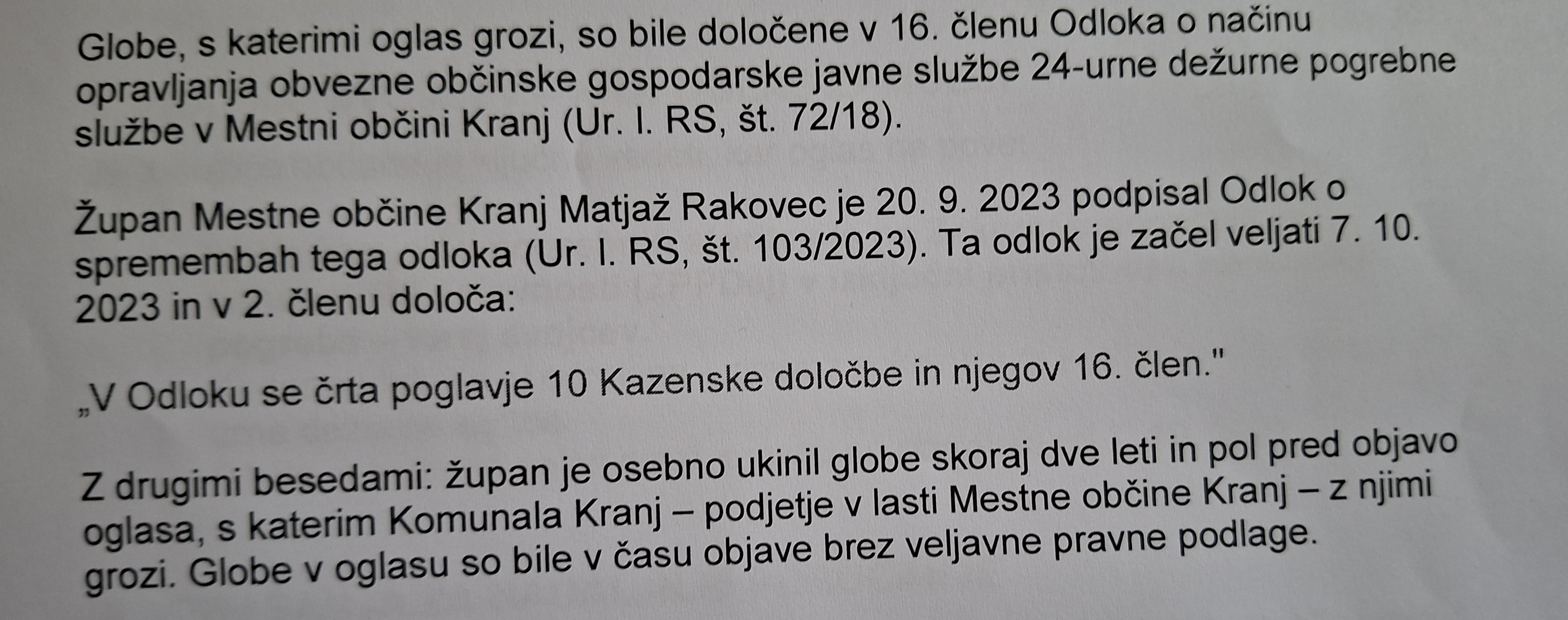 Kdo ima torej prav - Komunala, ki grozi s kaznimi občanom ali podjetniki, ki so nam poslali zgornje dokazilo?
