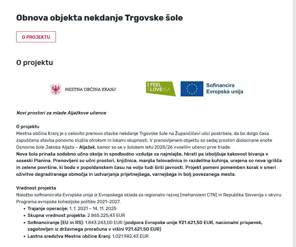 Ko so začeli prenovo, so javnost obvestili .- prav tako o pridobljenem= večinoma izgubljenem evropskem in državnem denarju....