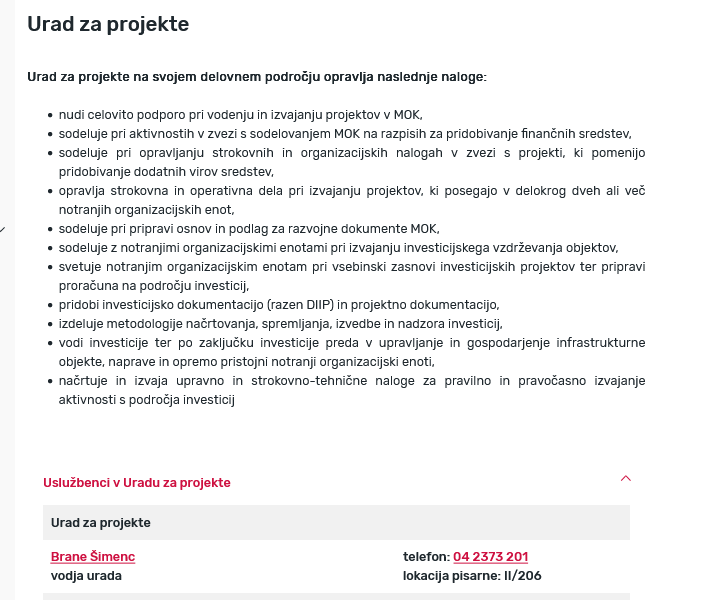 Opomba: gospod Brane Šimenc je postal zopet /prej je to počel pri slovitem Mohorju Bogataju/ odgovoren za projekte potem, ko je župan "presekal" urad na dva dela in se je Šimenc vrnil iz skorajda popolne pozabe....Gospod Tomaž Lanišek je bil ob vodenje projektov, a zdaj skrbi za razvoj in pametno mesto.