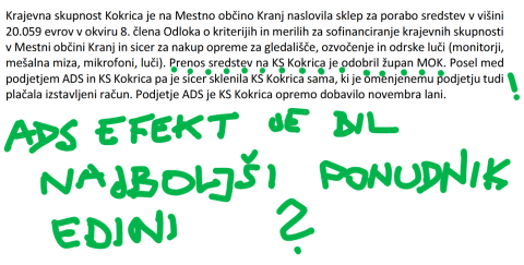 Ljudje imamo imena in priimke. Novice pa imajo ljudi, ki jih povedo ali zamolčijo. Kranjska javnost že res dolgo ni doživela novinarske konference kjer bi vsak novinar lahko kaj vprašal župana Kranja. Slednji plačuje objave različnim medijem /Radio Kranj, Gorenjski glas ipd./ in v teh medijih nastopa in govori kar hoče - ker pač plača. Napaka: mi plačamo, on govori.