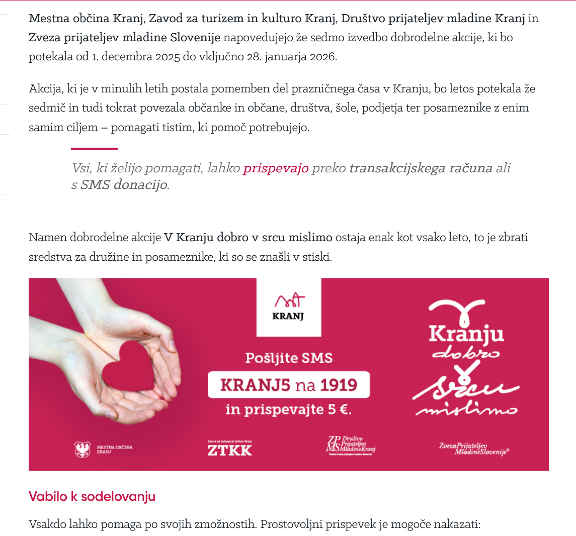 Klemen Malovrh, direktor Zavoda turizem in kulturo, je v preteklih letih iz proračunskega denarja plačal zasebnemu podjetniku za storitve pri izvedbi dobrodelne akcije več kot 15 000 evrov javnega denarja. Ko smo opozorili na to, nam je lani odgovoril, da zdaj dobrodelno akcijo izvajajo občinski in zavodovi zaposleni. Trajala je uradno do 28.1.2026 od konca novembra 2025. REZULTAT? VERJETNO GA POZNATA ŽUPAN IN DIREKTOR ZAVODA, NE PA TISTI, KI SO PRISPEVALI KAK EVRO ZA POMOČI POTREBNE. IN SE NAM JE OGLASILA OBČANKA IN BRALKA TRME Z VPRAŠANJEM, ČE JE NAM KAJ ZNANO, KAKO JE Z VSEM TEM IN ZAKAJ JAVNOST NIČ NE VE? NJENO VPRAŠANJE SPREMINJAMO KAR V JAVNO IN SI UPAMO STAVIT, DA BO ZDAJ ČETICA ODGOVORNIH ZA OBVEŠČANJE JAVNOSTI NA OBČINI IN V ZAVODU USPELA JAVNOST OBVESTITI - O ČEMURKOLI V ZVEZI Z AKCIJO...NE POZABIMO PA, DA FOTOGRAFIJ O DOBRODELNOSTI NAŠE POLITIKE NIKDAR NE MANJKA IN TUDI LETOS SI UPAMO STAVITI, DA BO TEMU TAKO....