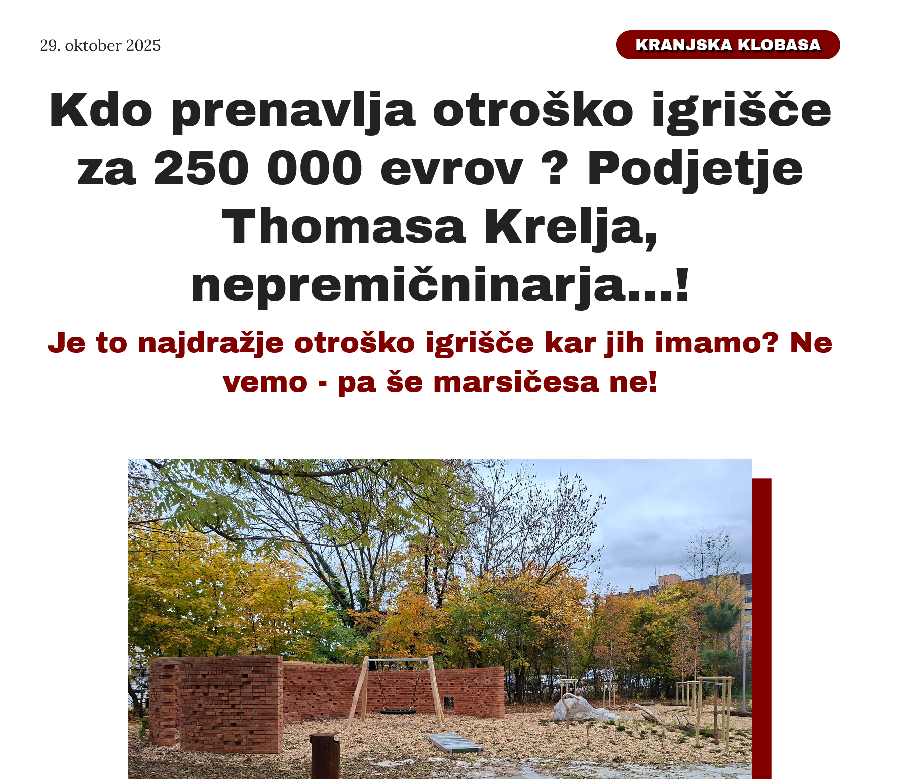 Med tem nas zasuvajo s "podatki" o tem, kako uspešen podjetnik je gospod Thomas Krelj. Takole zgleda poslovanje v 2024: 4,5 ZAPOSLENIH IN OKOLI 800 000 EVROV OBSEGA POSLOVANJA.... POMISLITE: ZA TAK POSEL JE BIL PRI OTROŠKEM IGRIŠČU EDINI PONUDNIK!?