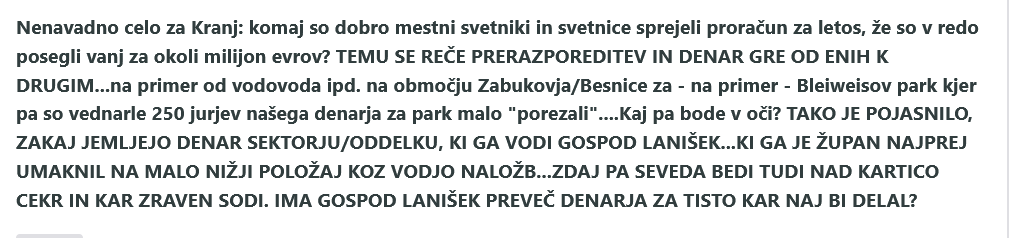 250 000 EVROV JE - NA PRIMER - CENA OTROŠKEGA IGRIŠČE PRI NEKDANJI TRGOVSKI ŠOLI....ZDAJ NAJ BI JIH DOBIL BLEIWISOV PARK - A SO SVETNIKI IN SVETNICE TO OKLESTILI....KAR TAKO, NA SEJI....TO SO KRANJSKE JAVNE FINANCE....