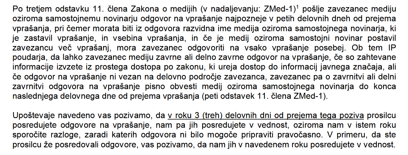 Država nam bo - karkoli že - odgovorila v treh dneh. Sicer sledi kazen...Podjetje, ki gradi stanovanja /Dolnov/ pa ni dolžno odgovoriti, Vprašali smo jih tole..../korespondenca z različnimi odgovornimi podjetja/