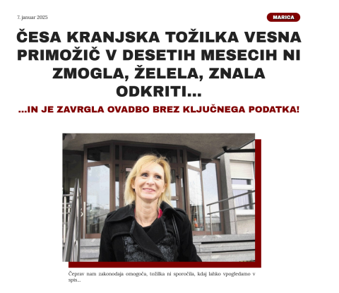 Kranjska tožilka Vesna Primožič nedvoumno odločila: NOVINARJU ONEMOGOČITI DELO NI NIČ NAROBE!