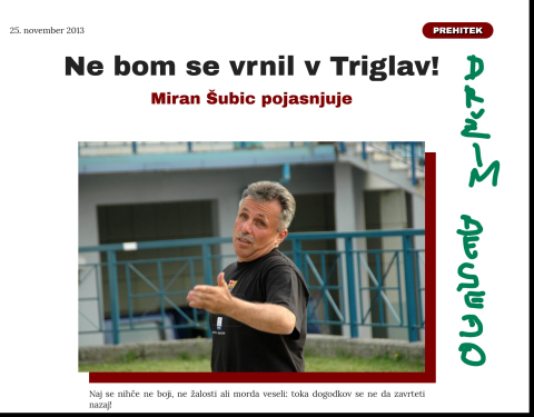 Igor Velov (prvi z desne) in Alenka Bratušek (druga z desne) sta z nalogami in sklepi (seveda ni bilo nobenega zapisnika) prišla v Kranj in povabila direktorja kluba Mirana Šubica v lokal Piramida kjer sta predstavila zaheve NZS. Vse so bile logične (ustavitev sporov, vloga NZSju za izredno licenco ipd.), razen ene: "Ko sta me seznanili za zahtevo Čeferina etc., ki je bila jasna, nedvoumna ipd., sem bil šokiran. Postalo mi je jasno, da bi zaradi mene ti ljudje poslali klub v drugo ligo po krivici in po zlorabi predpisov NZS. Igor Velov mi je kot predsednik jasno povedal, da me nihče - razen skupščina kluba - ne more odstaviti, ker sem voljen in ne imenovan. Torej moram sam v dobro kluba oditi, če ne prve lige ne bo - to pa je bilo jasno stališče Alenke Bratušek. Tiste gospe, ki se mi je do zdaj nekajkrat zlagala v obraz, ki sem jo sam pripeljal v klub, ki je za mojim hrbtom sklepala dogovore, ki je ob soočenju z lažmi odstopila, a se vrnila in s Čeferinom našla rešitev...Alenka Bratušek do danes ni pojasnila, kam je šel sponzorski prispevek podjetja Primorje, ki ga je sama urejala z direktorjem...a nekateri vsaj slutimo, kdo je od tega pobral smetano! ODLOČNO SEM SE UPRL TEJ STALINISTIČNI METODI: ČE IMAŠ RAD KLUB, BOŠ ODŠEL ZA NJEGOVO DOBRO. ODLOČNO SEM SE UPRL ALENKI INB SANDIJU IN VSEM, KI SO SKOVALI TO PRVO IN EDINO POLITIČNO-NOGOMETNO LUSTRACIJO V ZGODOVINI SAMOSTOJNE SLOVENIJE!" je povedal Miran Šubic. Najhuje je bilo, da se je zlagal Čeferin sam, ki očitno sploh ni vedel, kaj je pisalo na faxu, ki je Triglav vrgel v drugo ligo. In za dodatek: to je tisti Čeferin, ki dela za nogomet nesebično ipd. in je na začetku svoje poti želel preprosto nekega Šubica odstraniti iz nogometa, ker se je slednji drznil oporekati vsemogočni NZS in njegovim služabnikom v podobi Siniše Mitrovića, Andreja Zalarja, Aleša Zavrla...