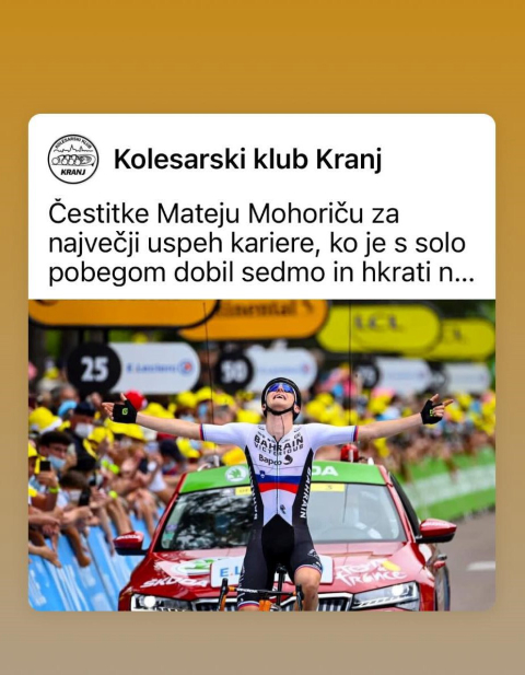 Mnogi so bili presenečeni, ko Pogačarju letos na francoski pentlji ne pomaga zvesti in vztrajni Jan Polanc, ki ga je lani vlekel do zgodovinske zmage. Kolesarstvo je od nekdaj šport taktike kjer ekipe morajo načrtovati zelo dobro, da se potem kolesa vrtijo do uspehov. Polanca so izpustili, ker naj bi drugi pomočniki bolj ustrezali podpori prvega zvezdnika, ki je že v rumeni majici. A pri tem ostaja za Britofljana še uteha - olimpijske igre in seveda dirka po Španiji kjer naj bi bil zopet del moštva, ki vse bolj kroji svetovni vrh kolesarstva. Oče Marko kot trener in sin Jan sta del kolesarske družine, ki je iz našega okolja. In če smo nekoč stiskali starejši pesti za Marka, je zdaj Jan tisti, ki je nesporno del slovenskega (in kranjskega) kolesarskega čudeža: POGAČAR, ROGLIČ IN POLANC IN MOHORIČ IN TUDI MEZGEC, KI BO NA TOURU MORDA IMEL PRILOŽNOST V KAKŠNEM SPRINTU OPOZORITI NASE!