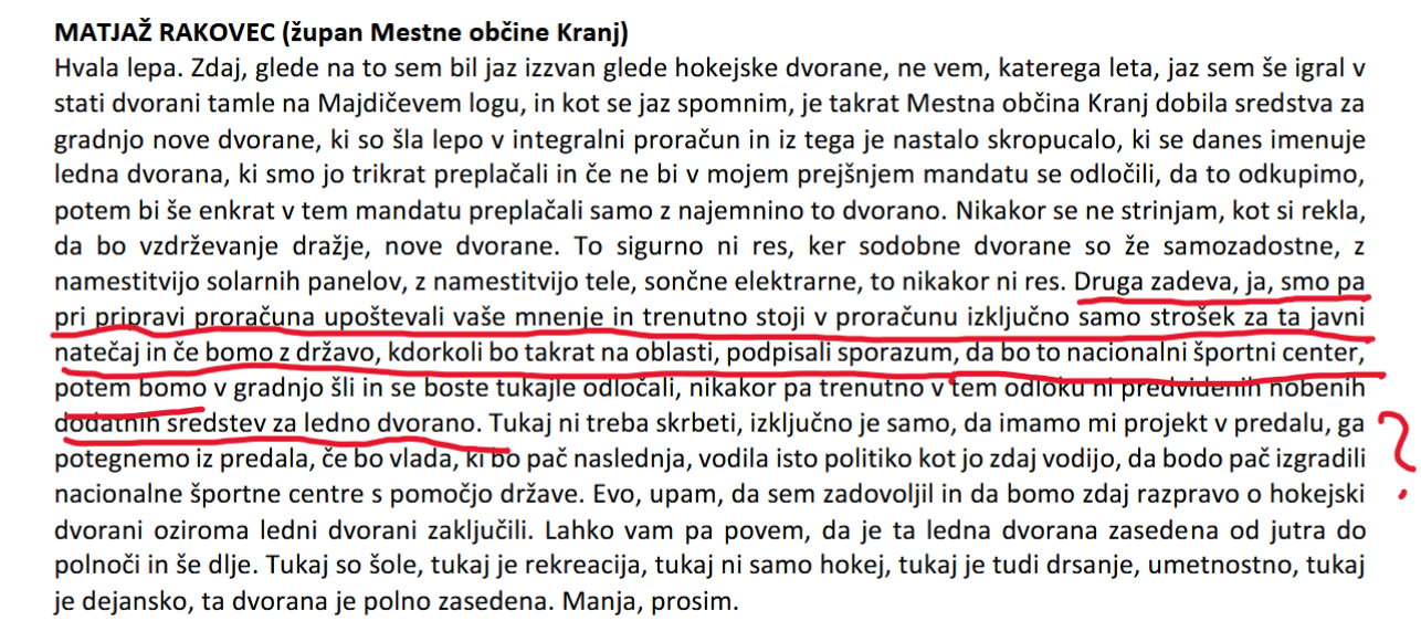 Župan Kranja je tudi predsednik Hokejske zveze Slovenije. Kranj pa - razen zasilne in res sramotne za mesto - nima dvorane za hokej, drsanje. Kako je z njenim načrtovanjem pa preberite spodaj....MATJAŽ RAKOVEC NA SEJI MESTNEGA SVETA O DVORANI: