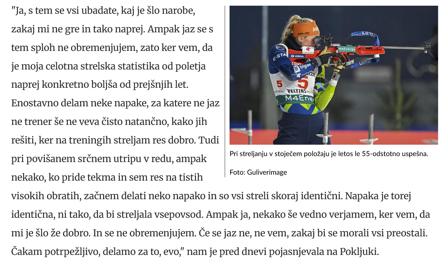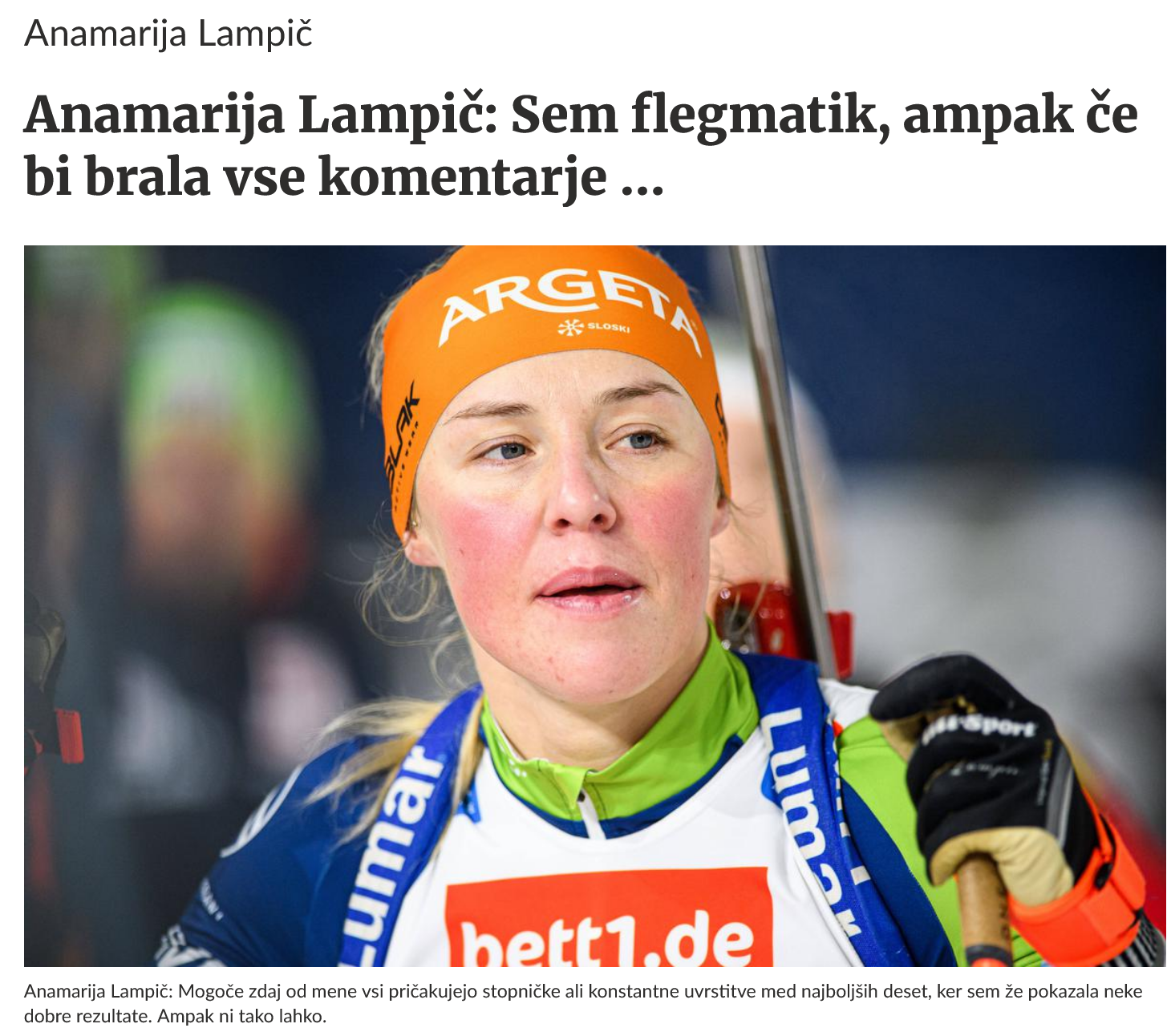 Skakalci in skakalke lahko marsikaj prikrijejo, a na koncu je "cesar nag" kot piše v pravljici. Ki za slovenske zimske športe /razen skokov.../ postaja vse manj pravljična. V smučariji so na repu čeprav smo bili nekoč pod vrhom, v smučarskih tekih pa smo imeli aduta...zdaj pa ne več: Anamarija Lampič je pred leti bila pri vrhu smučarskega teka, zdaj tja ne more v biatlonu. Šport je zamenjala povsem samovoljno, ker....niti ni pomembno. Toda tole kar beremo v zadnjih dneh nakazuje vzorec, ki ga lahko uporabimo za smučarijo: VI SE KAR NAPENJAJTE, VI KAR KRITIZIRAJTE S KAVČEV, MI ŽE VEMO....ZAKLJUČEK BI BIL V REDU, ČE BI TISTI, KI VEDO ZMOGLI VSAJ PRIBLIŽNO TO DOKAZATI TAM KJER JE EDINO POTREBNO: NA PRIZORIŠČIH BIATLONA, TEKA, ALPSKEGA SMUČANJA (VSA ČAST IZJEMAM). Ko pa nam Anamarija Lampič ponudi razlago, smo pa res lahko tiho ali pa jezni...
