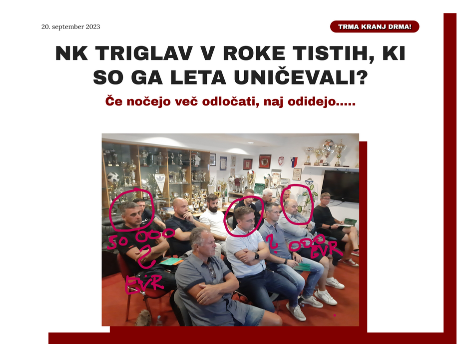 Takole so se izvolili leta 2023...zdaj se bodo ponovno. Prislana ne bo več zraven, klub pa je v tem letu doživel ponovn polom pri boju za prvo ligo: KVALIFIKACIJE SO ZAČELI SIJAJNO Z ZMAGO 3:1 V DOMŽALAH, NATO Z ISTIM NASPROTNIKOM DOMA IZGUBILI 1:4 IN OSTALI V DRUGI LIGI KJER SO JESENI PRAKTIČNO (A AUPANJE VEDNO OSTAJA...) ZAPRAVILI VSE MOŽNOSTI ZA PREBOJ, KER JE DUCAT TOČK ZAOSTANKA PAČ PREVEČ. Kaj pa finance? No, nekaj je povsem gotovo: ZAKLJULNO POROČILO ZA 2024 /VIR:ajpes/ KAŽE NA SKORAJ POL MILIJONA DOLGOV KAR JE SEVEDA ORODJE ZA VLADANJE TISTIH, KI MORDA TE DOLGOVE IZKAZUJEJO.