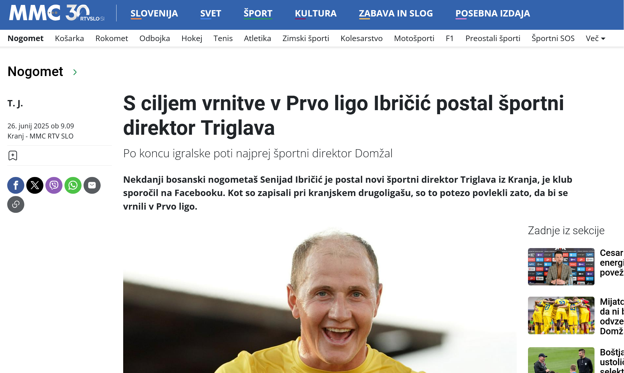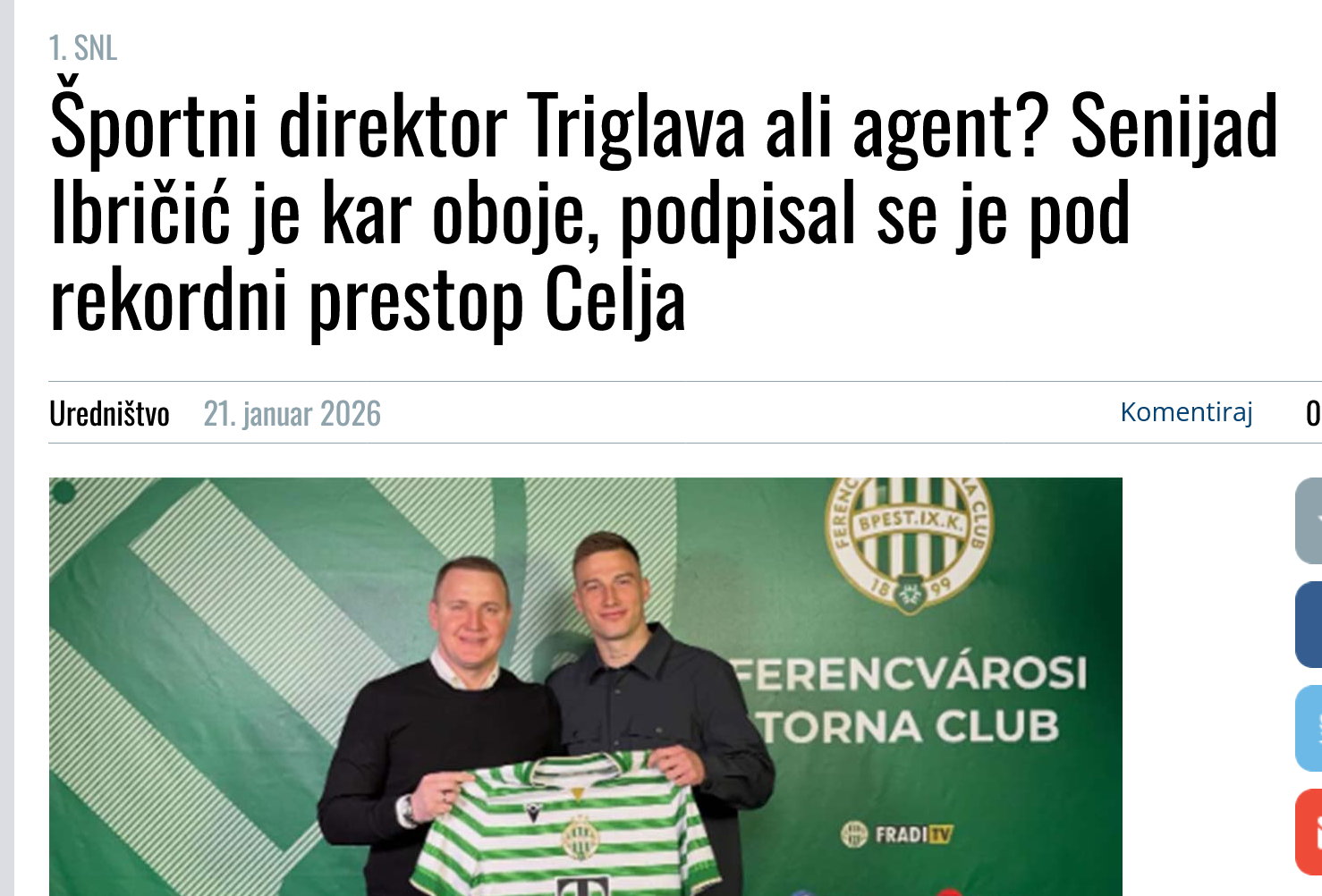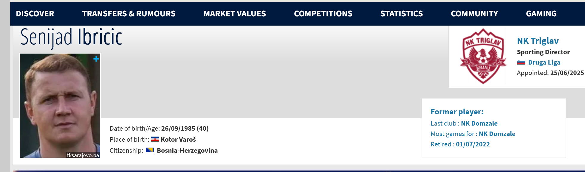 V NK Triglav je Senijad Ibričić zadolžen za prihode in odhode igralcev. Z njim so iz Domžal v Triglav prišli trener Dončič, vratar Mulalić ....prej so vsi dolga leta delovali v bankrotiranem klubu Domžale. Ali v NK Triglav gospod Ibričić vabi igralce ipd., ki jih "obvladuje", bodo presodili v klubu. VEČKRAT NAM JE RAZLOŽIL IN ZATRDIL, DA NI NOGOMETNI AGENT IN DA Z NAJBOLJ ODMEVNIM IN DRAGIM PRESTOPOM TE ZIME V SLOVENIJI NIMA NIČ. ZAKAJ JE NJEGOVA TELEFONSKA ŠTEVILKA KONTAKT AGENCIJE PA NE VEMO. ALI JE TOREJ BOGAT PRESTOP POTEKAL "POD KRINKO" PA NAJ UGOTOVIJO TISTI, KI SO ZA TO ODGOVORNI: