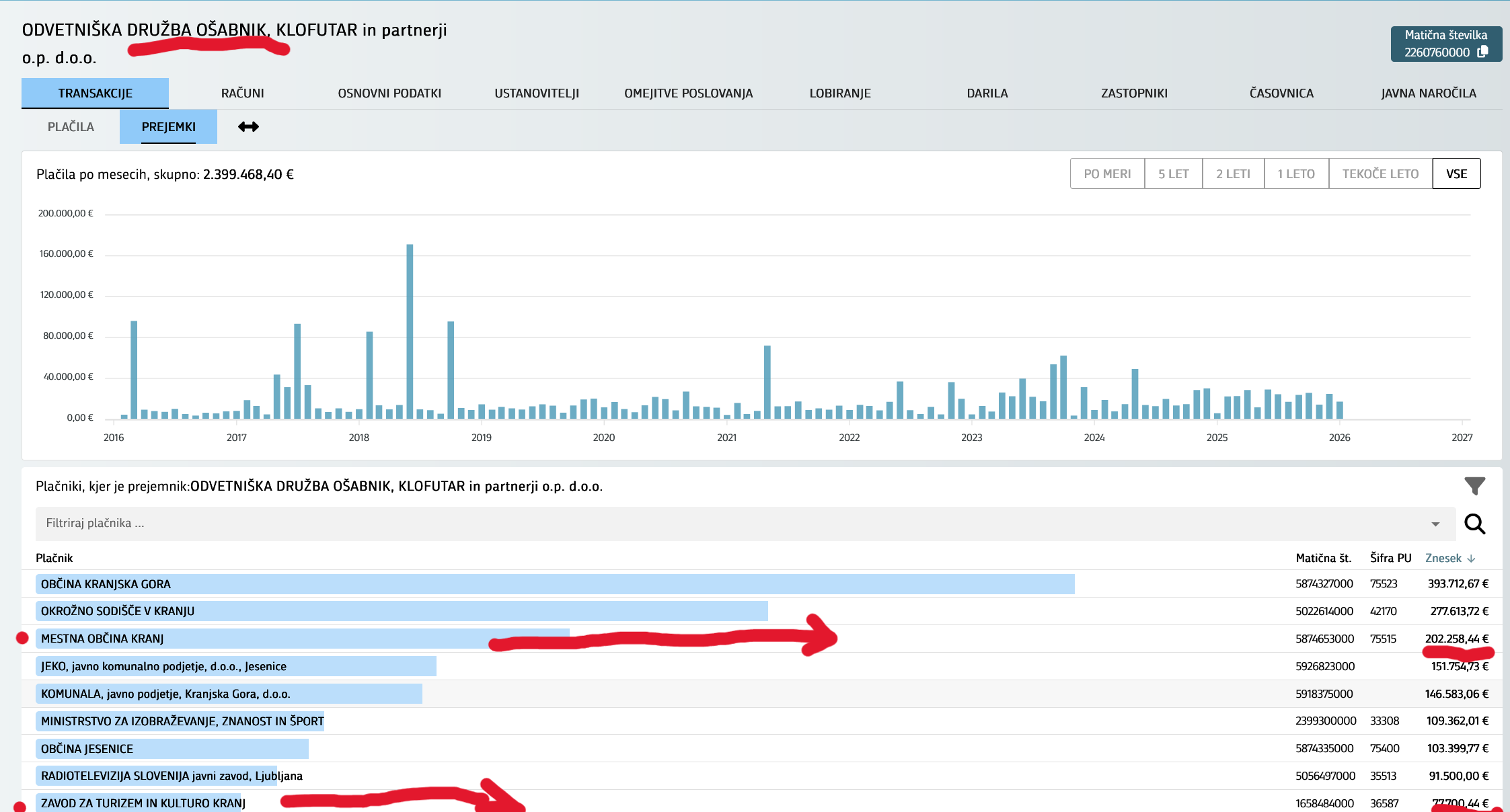 Izredno pogost sodelavec MO Kranj in številnih zavodov ipd. MO Kranj pa je odvetnik SAMO OŠABNIK (družba Ošabnik,Klofutar in partnerji). Omenjena družba kjer je Ošabnik v vodilni vlogi je namreč iz proračuna MO Kranj PREJELA OKOLI 350 000 EVROV (PODATKI PORTALA ERAR), SAMO OD MOK 200 000, OD ZAVODA ZA TURIZEM IN KULTURO PA SKORAJ 80 000 EVROV ZA SVOJE STORITVE. A gospod Ošabnik je med tem postal tudi zasebni partner NUŠE EKAR.